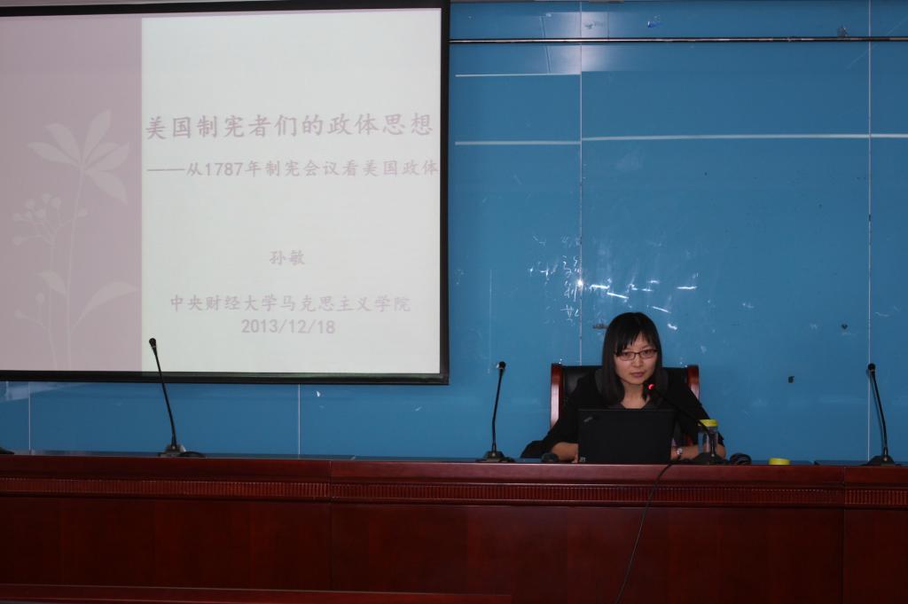 12月18日,由永利集团88304官网举办的第三期学术沙龙活动在学术会堂702举行。本次学术沙龙的主题是“美国制宪者们的政体思想——从1787年制宪会议看美国政体”,由青年教师孙敏主讲,副院长哈战荣主持,全院师生约50余人参加了本次活动。