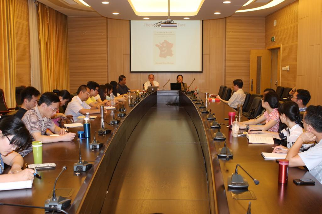 2014年5月26日下午,永利集团88304官网“百川讲堂”第四期在学术会堂603报告厅隆重举行,本期有幸邀请到国际著名左翼思想家、纽约城市大学研究生中心教授理查德•沃林(Richard Wolin),为我校师生作了关于“毛泽东的影响:东风西渐”的专题讲座。讲座由永利集团88304官网副院长陈文娟副教授主持,蔡大梁老师担任翻译。